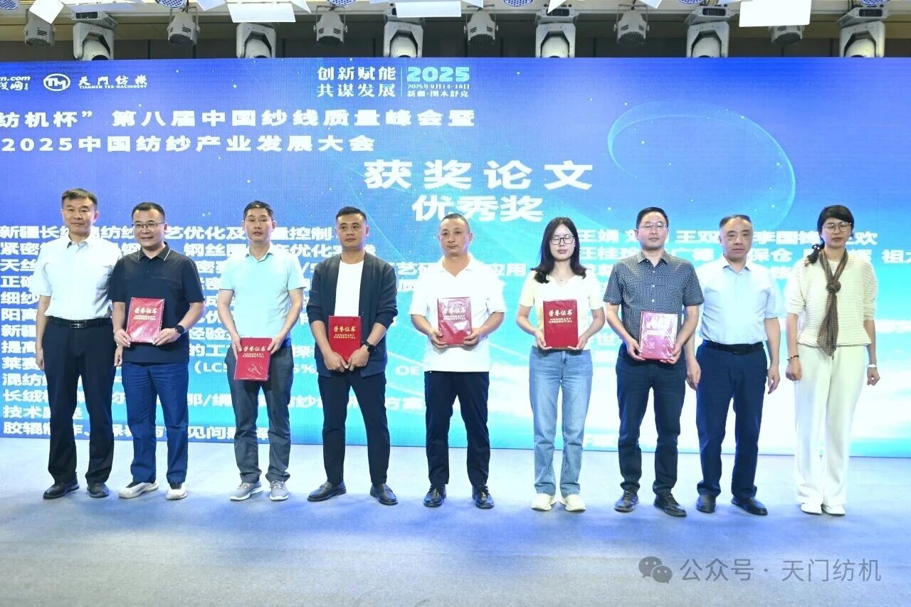開幕式上,隆重舉行了“天門紡機(jī)杯”第八屆中國紗線質(zhì)量峰會獲獎(jiǎng)?wù)撐念C獎(jiǎng)活動,新疆維吾爾自治區(qū)紡織工程學(xué)會理事長、新疆大學(xué)紡織與服裝學(xué)院院長夏鑫,天門紡機(jī)總經(jīng)理焦倫進(jìn),中國紗線網(wǎng)總裁鞠彥軍為獲獎(jiǎng)作者頒發(fā)了證書和獎(jiǎng)金。